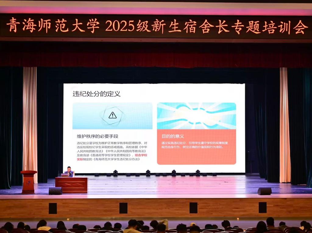 为充分发挥宿舍作为育人基本单元的重要作用,提升2025级本科生宿舍长的综合素质,发挥宿舍在大学生学习生活、成长成才过程中的朋辈引领和模范带头作用,10月22我校组织开展了2025级本科生宿舍长集中培训,全校共计550余名本科新生宿舍长参加。